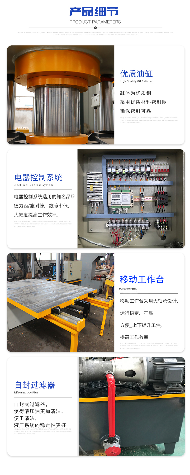 三梁四柱油压机广泛适用于紧固件厂、汽车维修、五金行业、车件公司、矿业、电子元件、表带、首饰、灯饰、照明、手机外壳、泵业、电器设备等行业