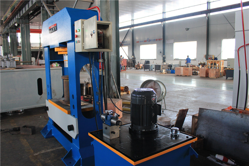 1、100吨框架式油压机采用全钢性结构,经振动时效处理使机械变形量小。