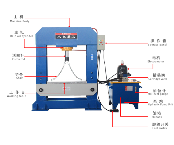 龙门油压机,是一多功能的中小型油压机,广泛应用于机械行业的拆卸、成形、矫正、校直、压装和板料成形,可作为现代汽车修理行业必备的压力设备
