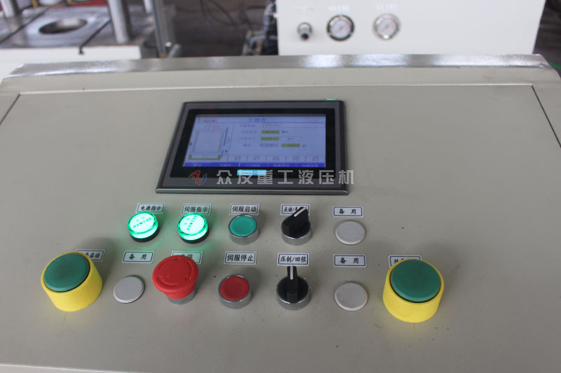 1、100吨四柱伺服油压机采用先进PLC液压传动技术,科技含量高,故障率低,自动化程度高,工作效率高。