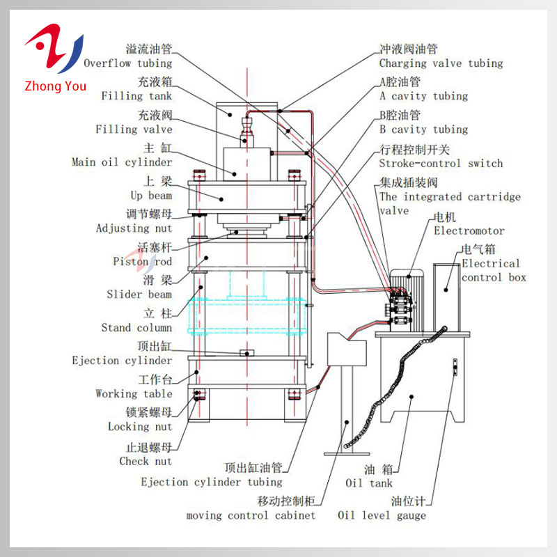 三梁四柱油压机适用于各种可塑性材料的压制工艺,如冲压、弯曲、翻边、薄板件的拉伸、成型、冲裁、弯曲等。也可从事于校正、压装、砂轮成型、塑料制品及粉末制品的压制成型