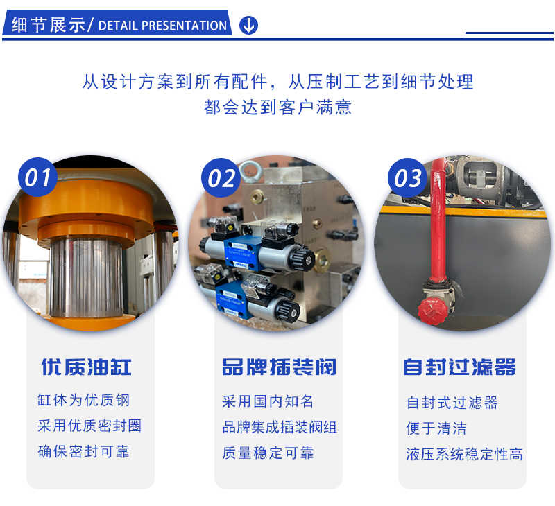 1、本机采用液压传动,高度专业整体阀块,超大流量通径,使系统压力损失少,密封性能好。