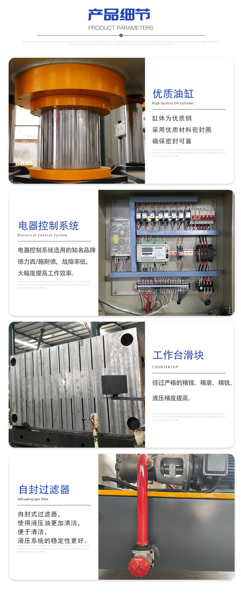 5、四柱采用高强度合金钢制作,表面镀硬铬,耐磨性好;