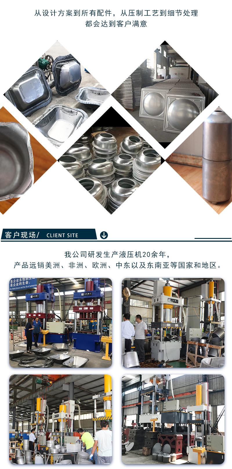 2、采用四柱导向结构,导向精度高,抗侧向力强,适用于压制精度要求高、不对称产品