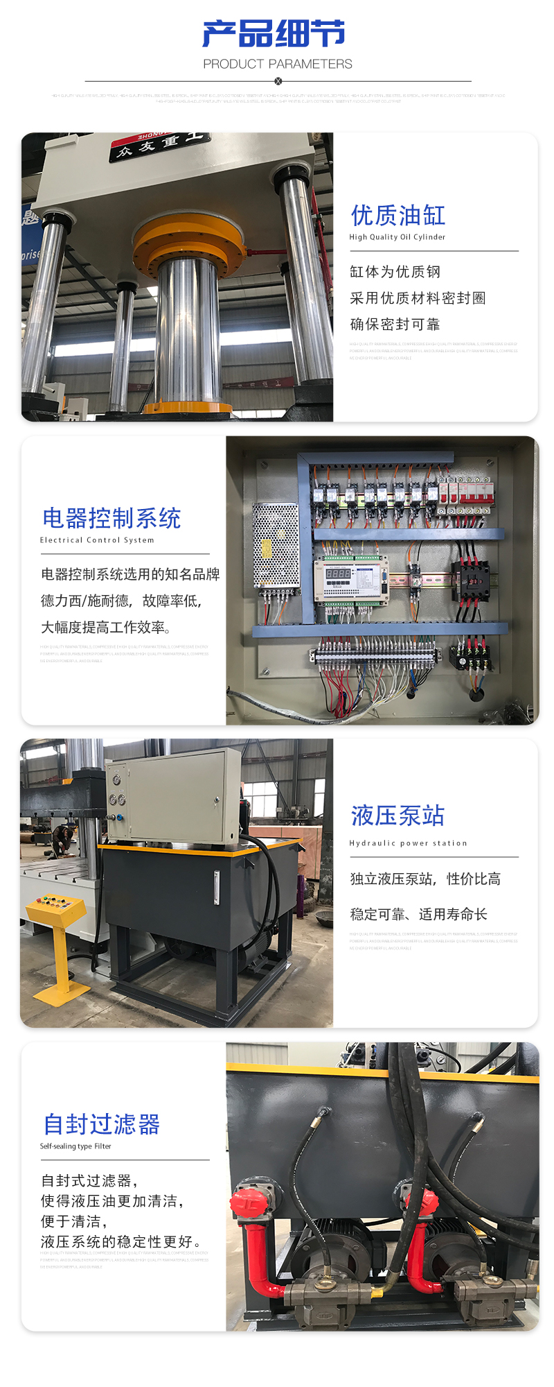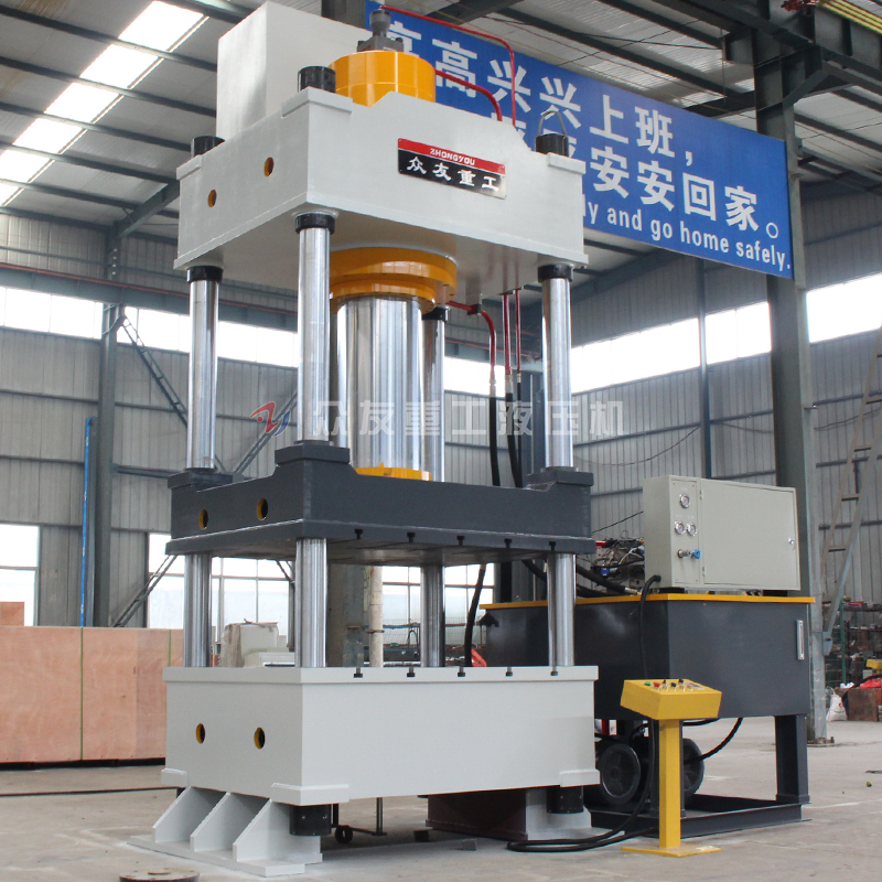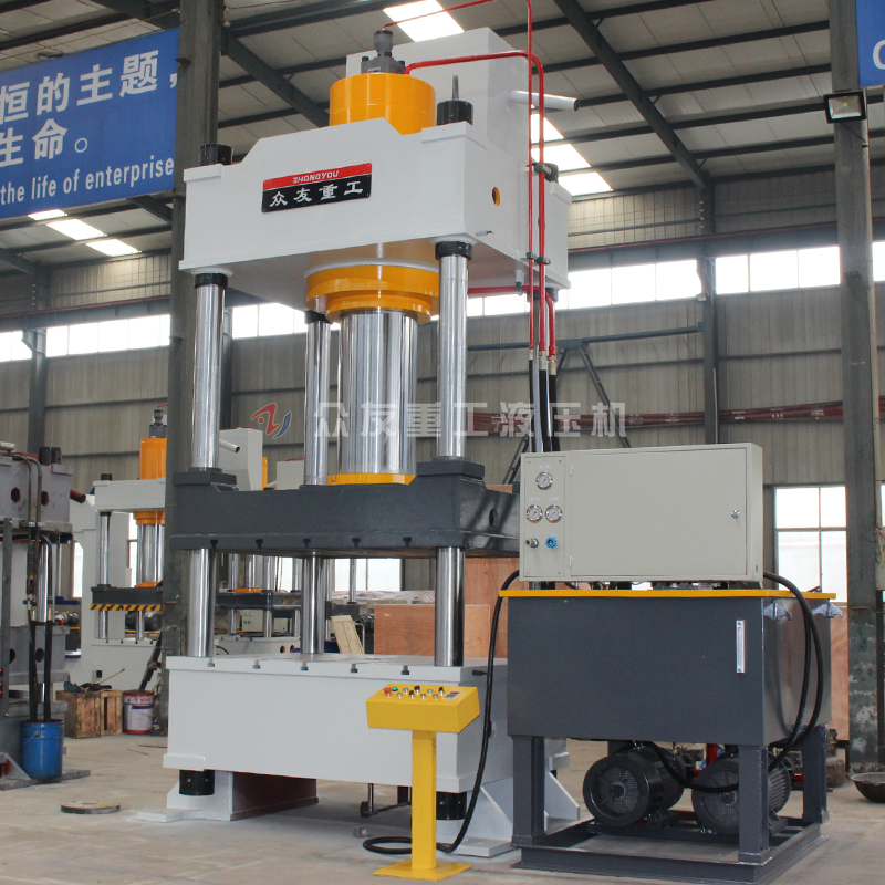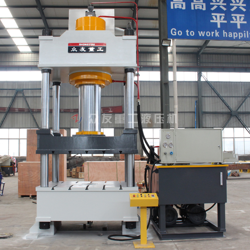 本机为一台滕州众友重工自主设计生产的500吨金属拉伸成型油压机,属于三梁四柱油压机中的一种,该设备具有结构紧凑、压力高、刚性强、循环润滑好、操作简单、产量高、耐久性好等特点。500吨多功能四柱压力机整机结构紧凑,采用了先进高质量的进口液压电子元件,因而具有动作灵敏可靠,操作安全方便,工作平稳,低能耗以及使用寿命长、久经耐用等一系列优点。可根据客户要求设计制造,支持非标定制。采购了解更多该设备信息,请致电咨询:13562463338