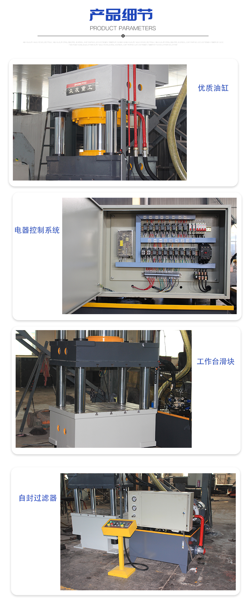 1、500吨漏粪板成型油压机四柱式结构,机架与活动工作台导向精度高,刚性好,抗侧向力强,特别适用于压制不对称的产品;结构紧凑、性价比高 经济适用。