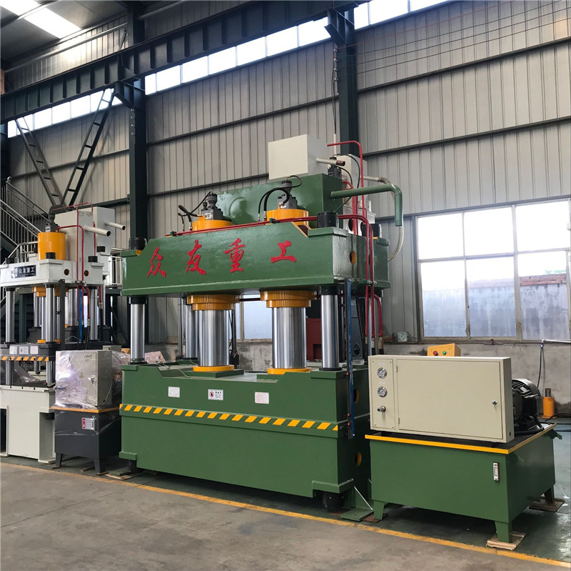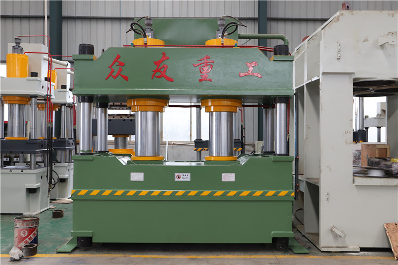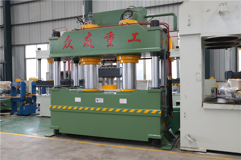500吨四柱双缸油压机是山东滕州众友重工机械设备有限公司自主研发生产设计的,采用不锈钢经冲压,折边,成型等工艺加工而成,无焊接工艺(因焊接处材料组织发生变化易生锈)。其中冲压工艺,就是使用加工成型,冲压工艺是一种金属加工方法,它是建立在金属塑性变形的基础上,利用模具和630T三梁四柱金属拉伸及对板料施加压力,使板料产生塑性变形或分离,从而获得具有一定形状、尺寸和性能的零件(冲压件)