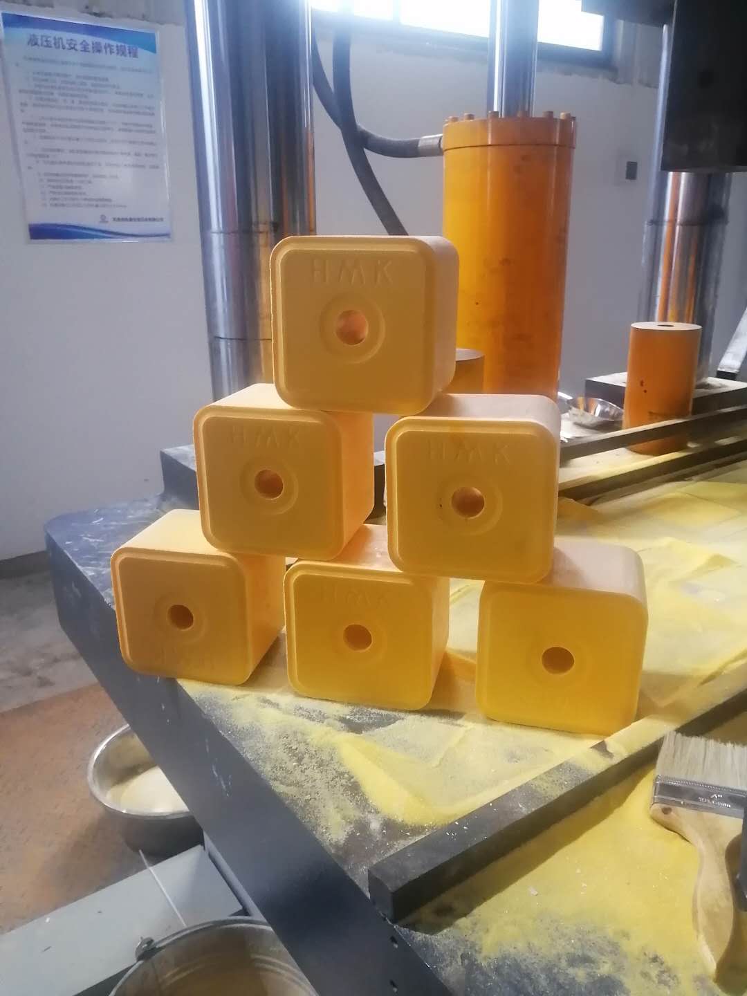 我公司生产的牛羊营养舔砖油压机是一种液压压块机设备,压力大,能一次成型,压制密度大,压制出的产品外观光洁美观