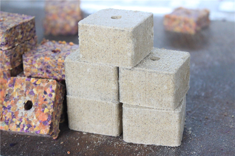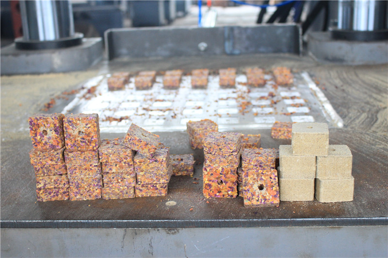 5、630吨双色鱼饵压块油压机更换模具可生活参多种规格样式的盐块,重量可达3kg~5kg,10kg的,实现了产品多样化需求,减少了投资成本。