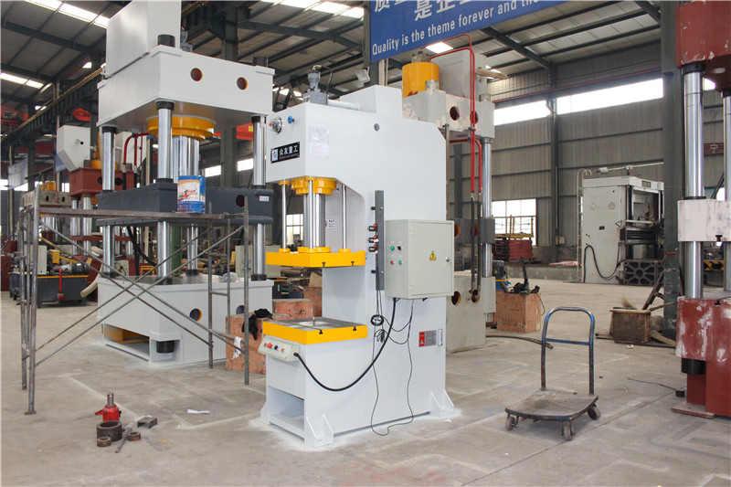 63T带四向导柱式单臂油压机是山东滕州众友重工机械设备有限公司根据用户需求进行设计生产的,机身采用钢板焊接结构,经计算机优化设计,其强度、刚性、结构、防变形性等均满足标准和使用要求,且有充裕的安全系数;单柱采用高强度合金钢制作,表面镀硬铬,耐磨性好,液压系统的油箱布置于机身内,以减少机器的占地面积,外观简洁美观,液压控制采用二通插装集成系统,工作可靠、动作直观、维修方便。滑块的工作压力,空载快速下行和慢速工进的行程范围均可根据工艺需要进行调整