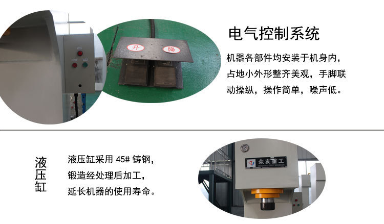 滕州众友重工机械设备有限公司是我国油压机、压力机专业生产企业之一, 公司拥有大型落地镗铣床、重型车床、铣床刨床等设备,工艺装备先进,专业生产常规油压机、四柱油压机、小型油压机、单臂油压机、多功能油压机、框式油压机、龙门油压机、卧式油压机、三梁四柱油压机各类油压机及汽保设备。公司与多家国有大型企业、独资合资及民营企业服务配套数十台,深受用户欢迎