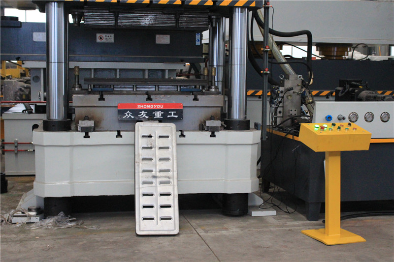 400吨伺服压地漏盖板油压机以镀锌板为基板,工作台、滑块为整体45#铸钢,镀锌板为基板,采用优质环保聚酯烤漆为面漆。