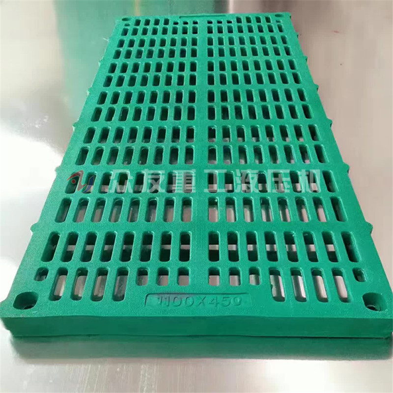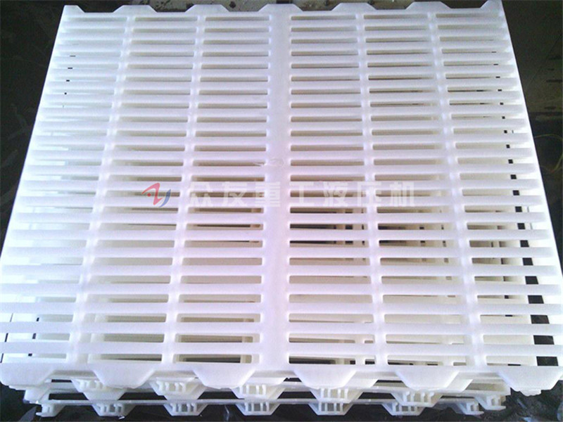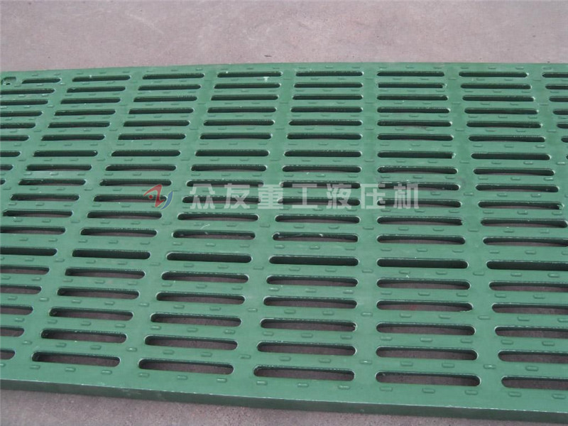 漏粪板采用BMC复合材料,高压压制成型,内部添加双层加粗铡筋网,承重能力强。新型复合漏粪板采用原生料制作,原材料有:环保型树脂,碳酸钙粉,苯乙烯,玻璃纤维搅拌均匀后,使用大台面315吨漏粪板成型油压机经145度高温模压一次成型,复合漏粪板采用背面双承重结构,加的有双层钢筋,抗摔耐用。承重力度高,加重不加价