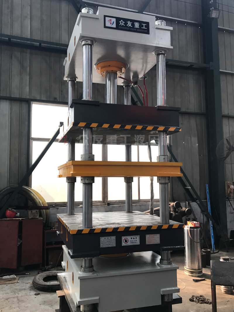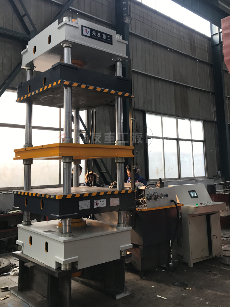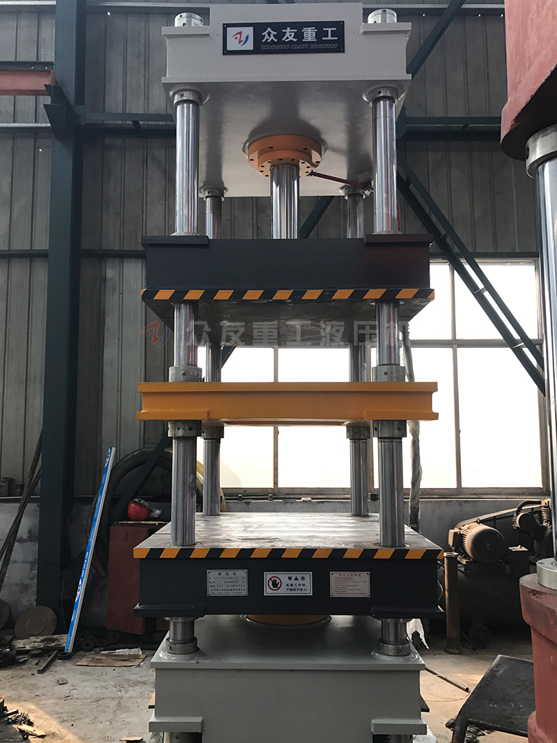三梁四柱油压机是专为铝、铜制品和不锈钢、薄铁制品行业设计制造的油压机,特别适用于薄板拉深和不锈钢、薄板压制成形,机身刚性好,滑块速度快,冲击成形好等特点。设备锻件精度高,能较好的控制高度公差,材料利用率及生产效率高,易于实现在自动化,对工人操作水平要求低,噪声和振动小等优点