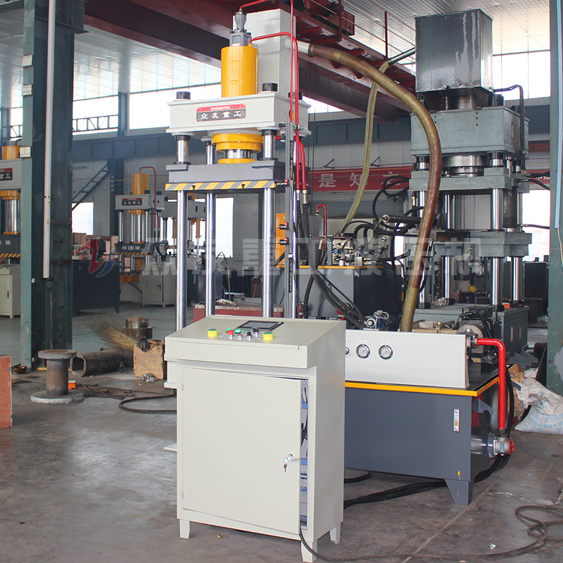 四柱油压机变频调速设备由整流电路、滤波电路、逆变电路和控制电路组成,其功能是通过整流环节将沟通电能经过整流、滤波为直流电能,又通过逆变环节转变成不同频率的沟通电能输出给电机。所以可让四柱油压机液压油泵电机在不同的转速下作业。
