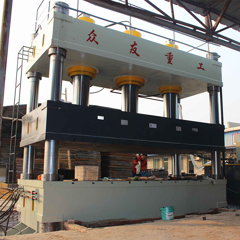 2、采用四柱导向结构,导向精度高,抗侧向力强,适用于压制精度要求高、不对称产品