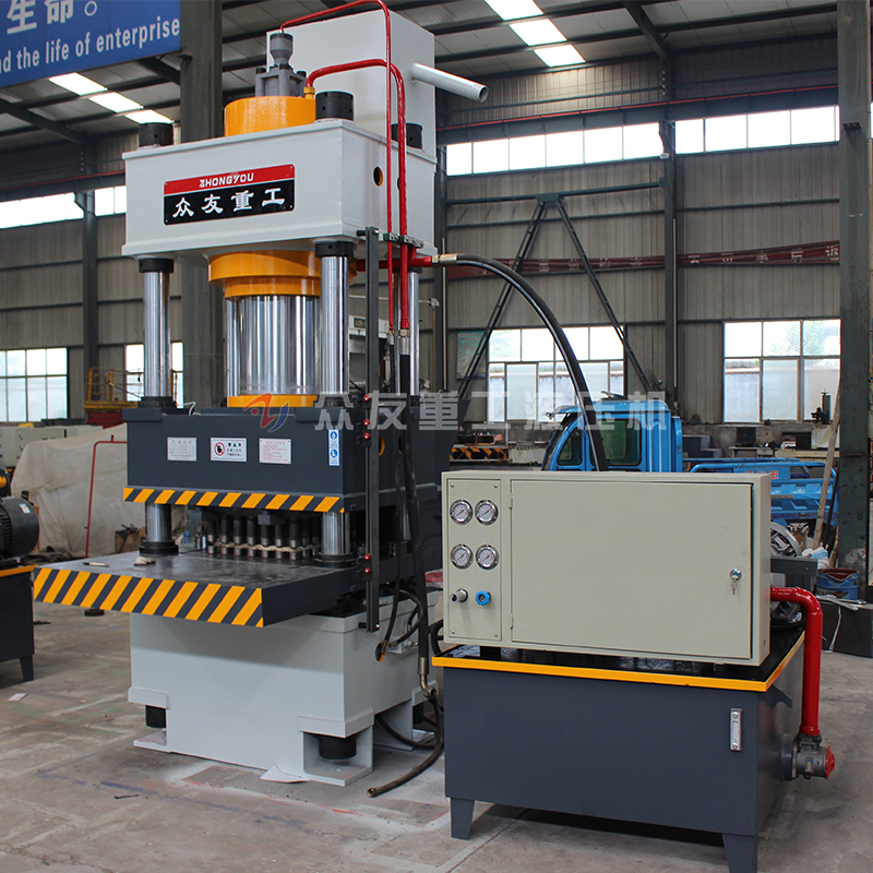 汽内衬成型油压机机身为三梁四柱结构,机身采用全钢板CO2焊接,焊接后通过回火振动处理,确保机身永不变形。液压系统位于机身内,外型美观,操作方便。该系列设有独立的液压与电器控制系统,采用按钮集中控制,可实现定程和定压两种成型工艺,具有压力显示和行程、压力调节等功能。而且导柱、活塞杆中频淬火后镀硬铬处理永不生锈拉毛,油泵进油口装有独特的过滤装置,确保油泵和阀的使用寿命。油路连接采用进口高压软管,大大降低机器噪声。
